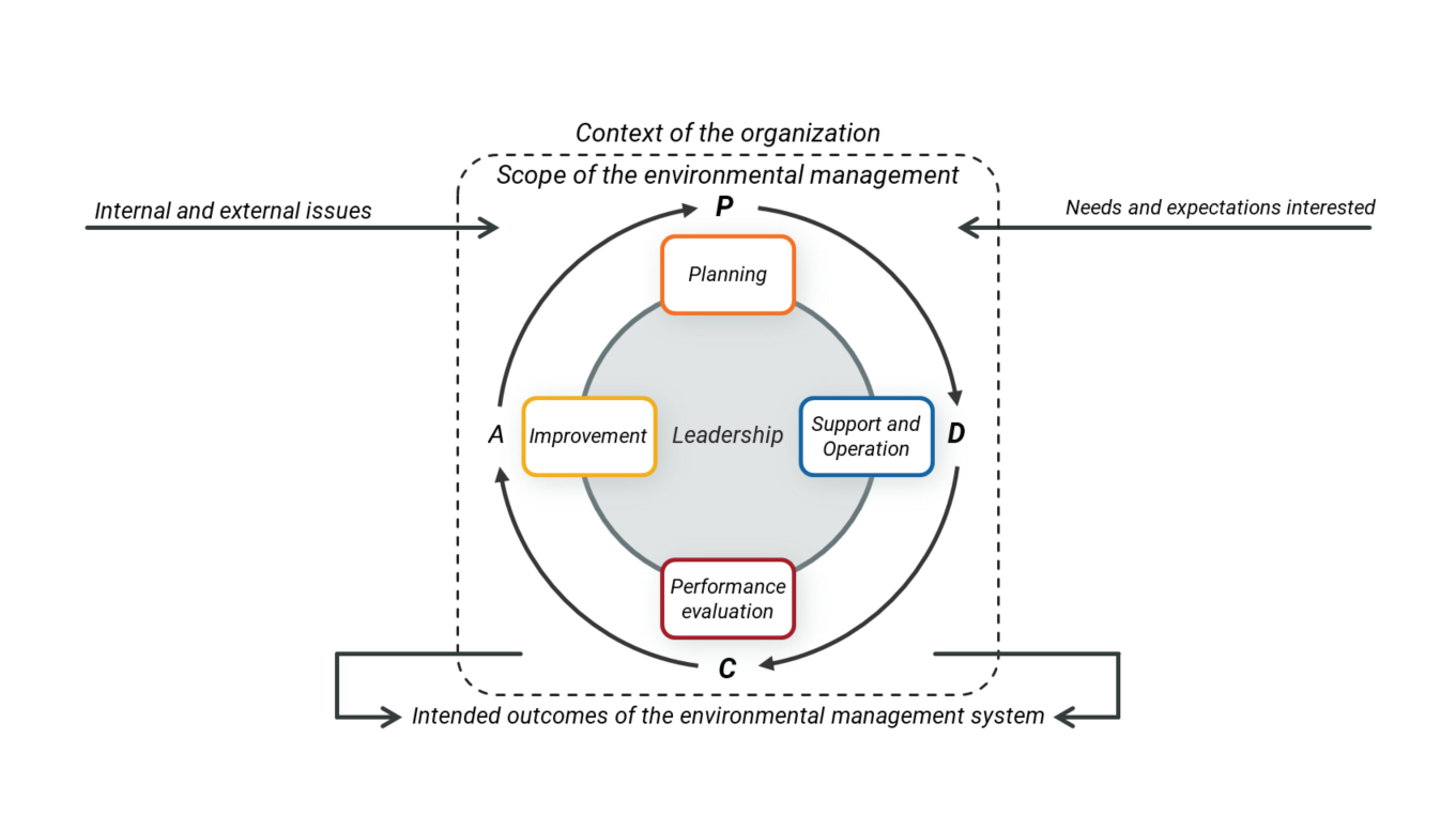 To ensure continual improvement, ISO 14001 follows the Plan-Do-Check-Act (PDCA) cycle. This cycle guides organizations in planning an EMS, implementing controls and processes, monitoring and evaluating EMS performance, and taking appropriate actions to continually improve the effectiveness of the EMS. By embracing the PDCA cycle, organizations can systematically enhance their environmental performance, meet environmental objectives, and maintain a sustainable approach to environmental management.